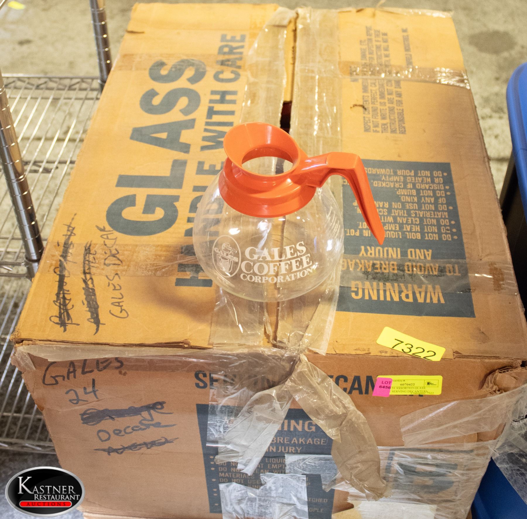 BOX OF 24 ASSORTED GLASS COFFEE SERVING DECANTERS
