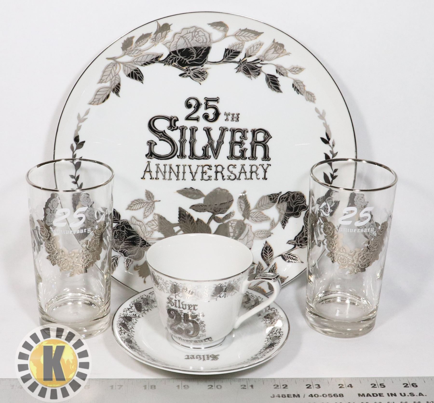 BOX OF 25TH SILVER ANNIVERSARY TABLEWARE