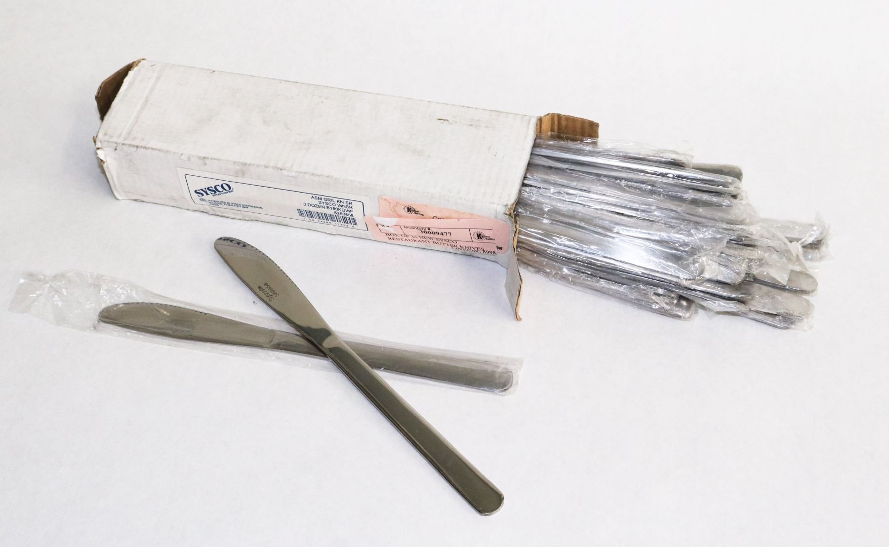 BOX OF 36 NEW SYSCO RESTAURANT BUTTER KNIVES