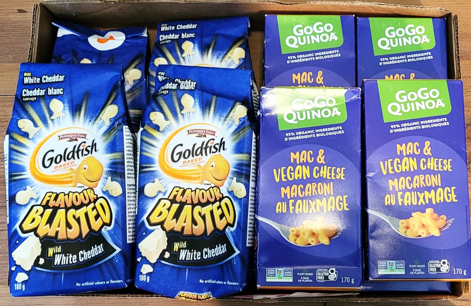 180 GRAMS EACH OF CRACKER PACKAGES AND 5 BOXES OF VEGAN QUINOA MAC & CHEESE