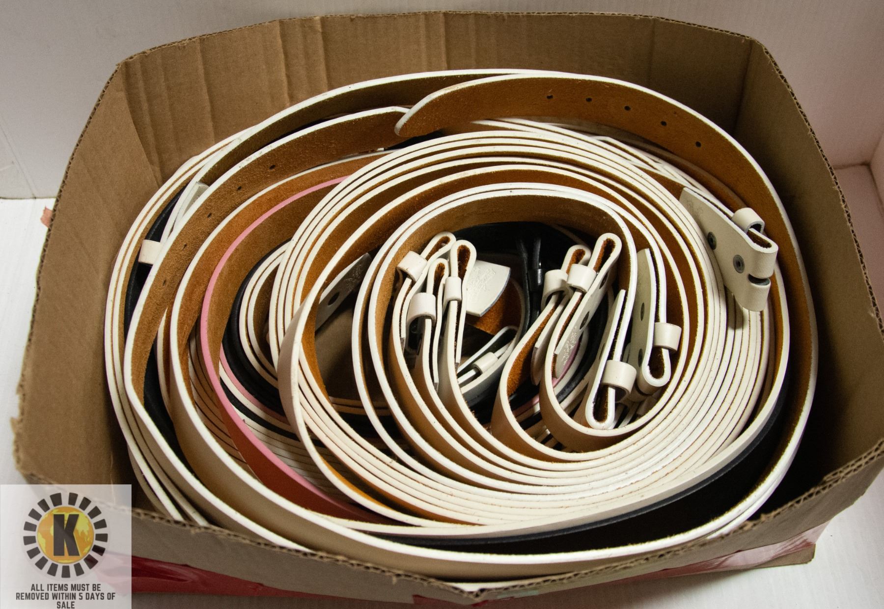 BOX OF 40 NEW LEATHER BELTS - VARIOUS SIZES