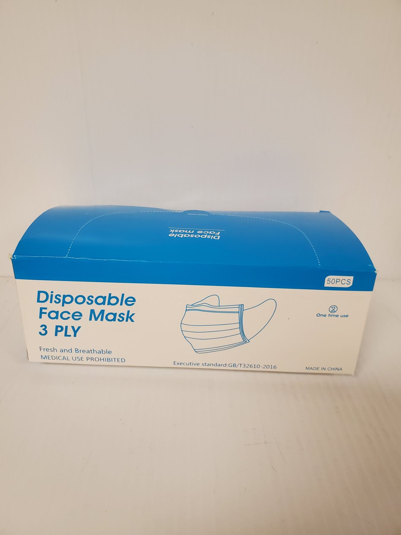 BOX OF 50 DISPOSABLE 3PLY MASKS