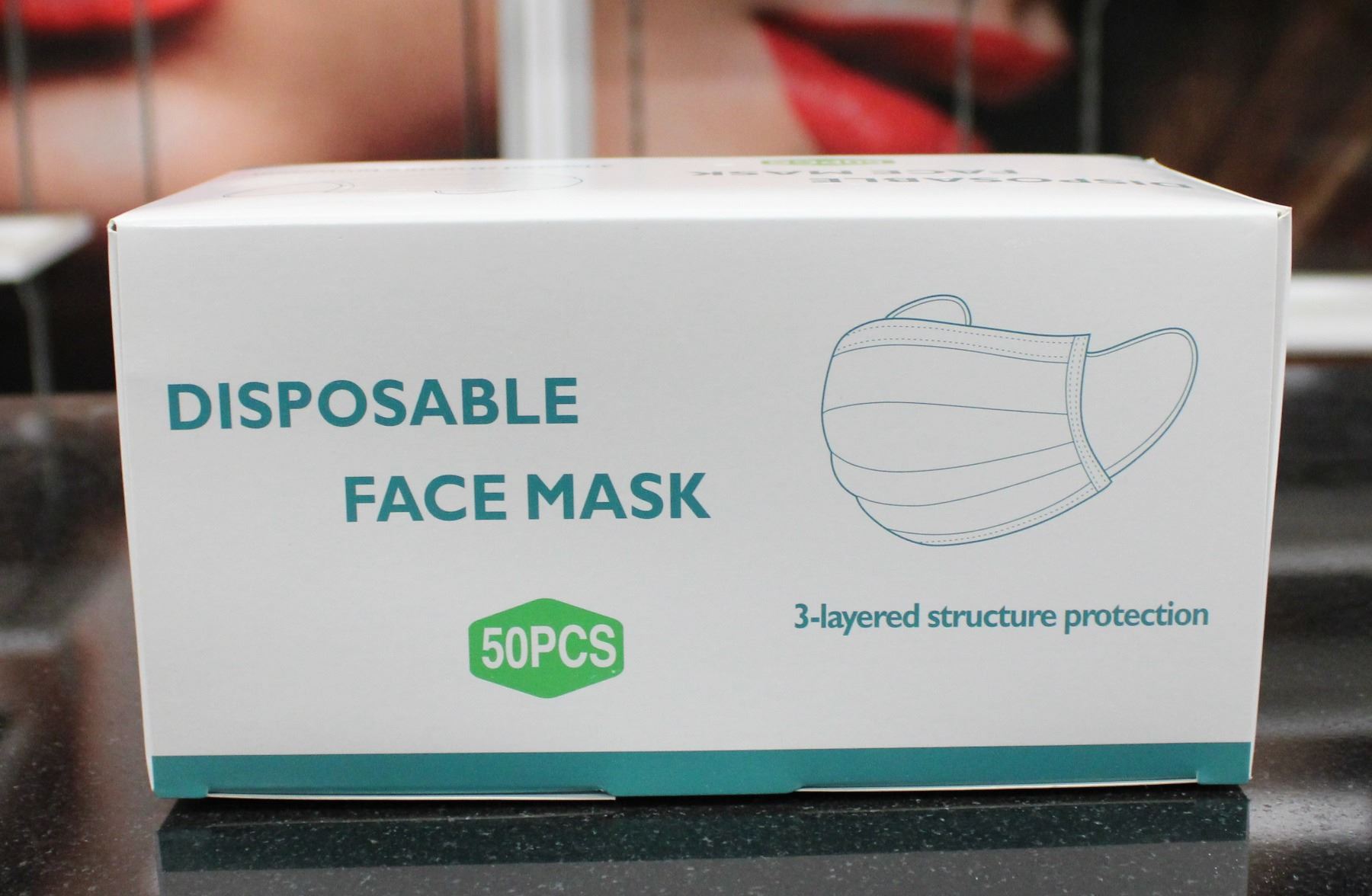 BOX OF 50 DISPOSIBLE FACE MASKS.