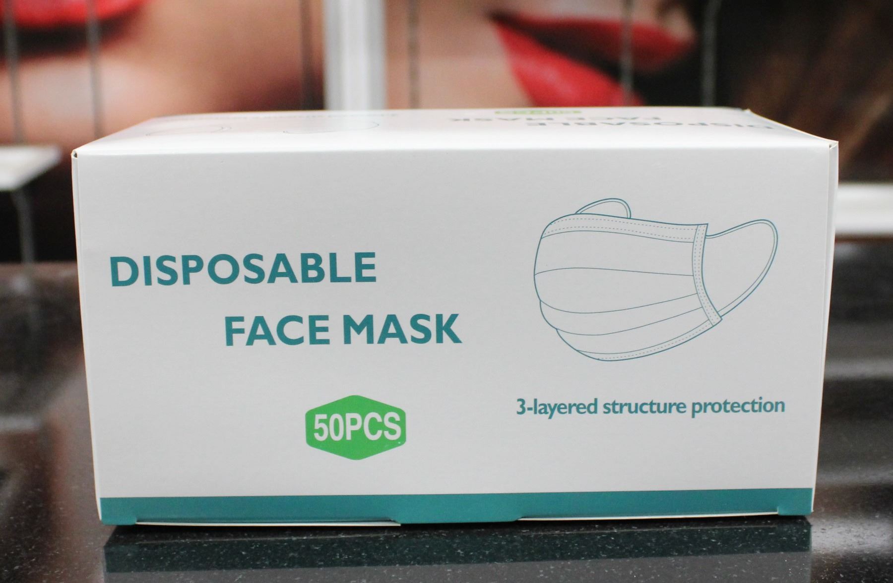 BOX OF 50 DISPOSIBLE FACE MASKS.