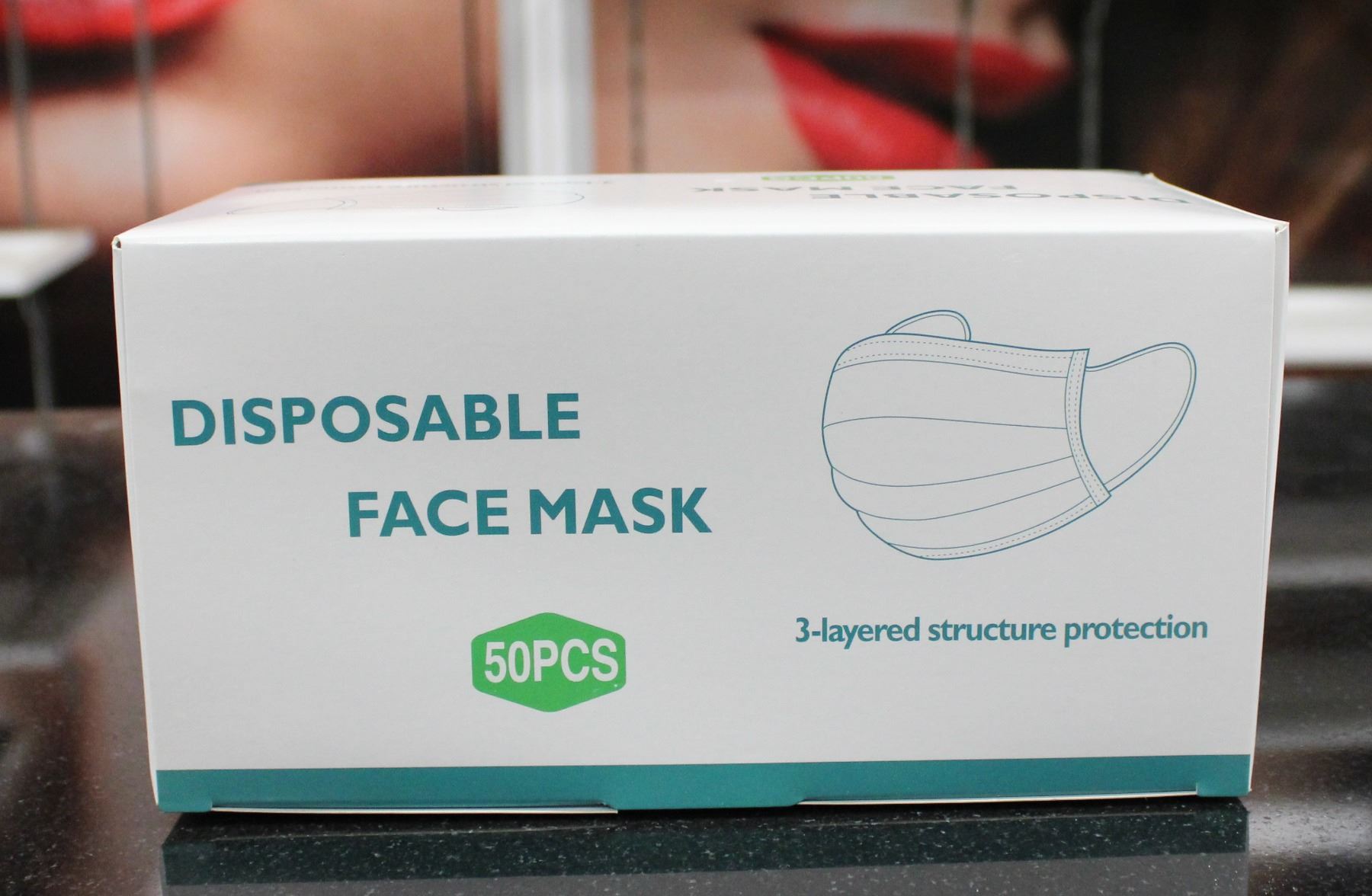 BOX OF 50 DISPOSIBLE FACE MASKS.