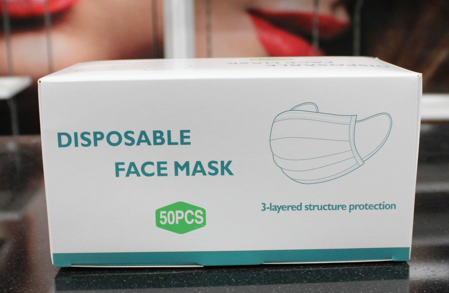 BOX OF 50 DISPOSIBLE FACE MASKS.