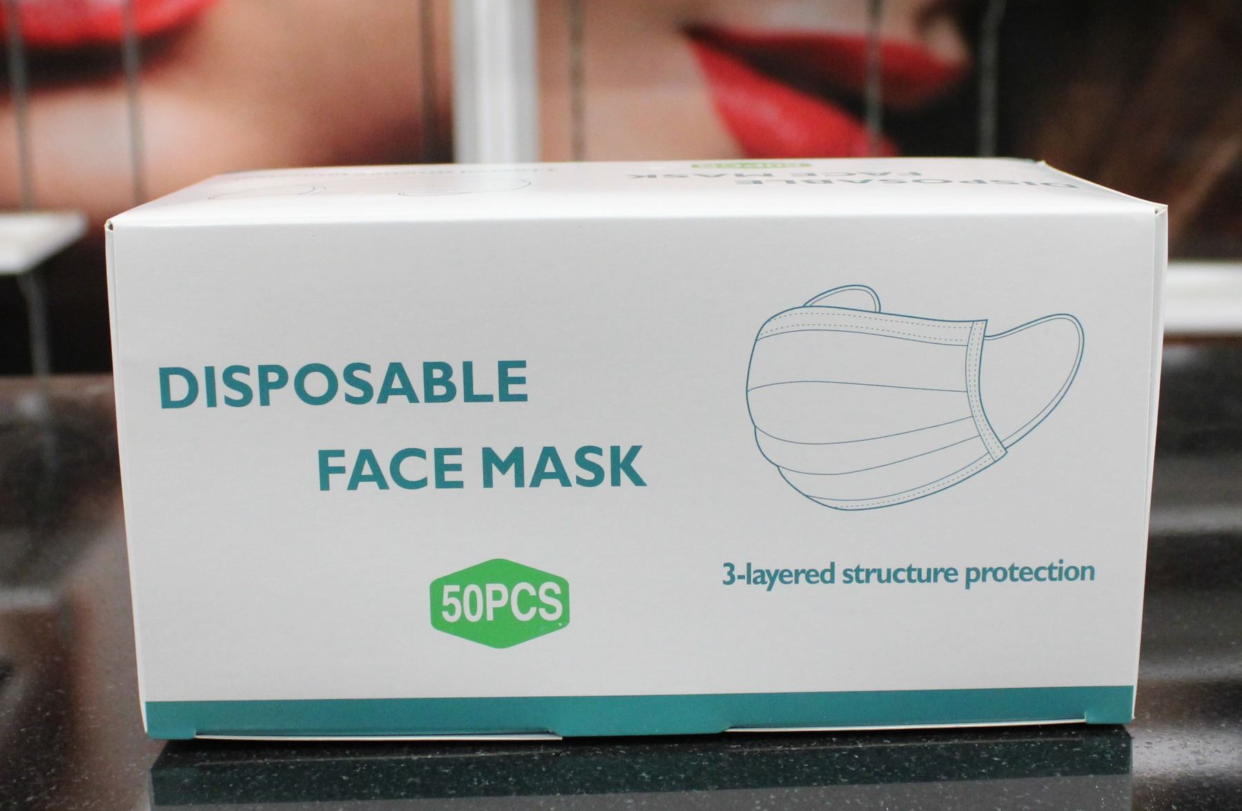 BOX OF 50 DISPOSIBLE FACE MASKS.