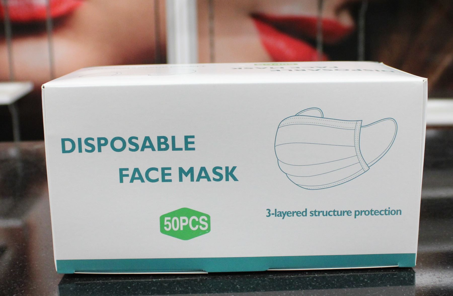 BOX OF 50 DISPOSIBLE FACE MASKS.