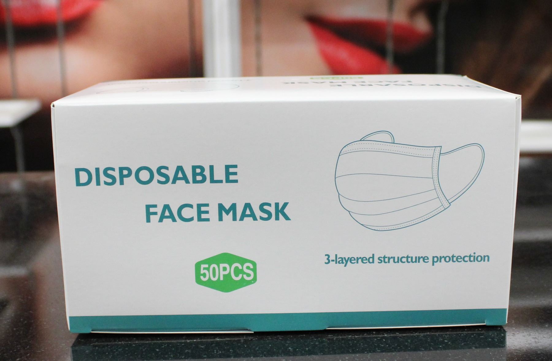 BOX OF 50 DISPOSIBLE FACE MASKS.