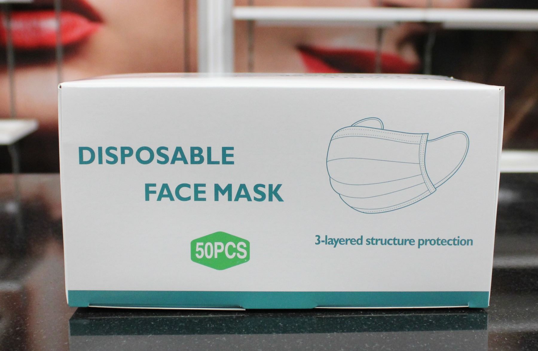 BOX OF 50 DISPOSIBLE FACE MASKS.