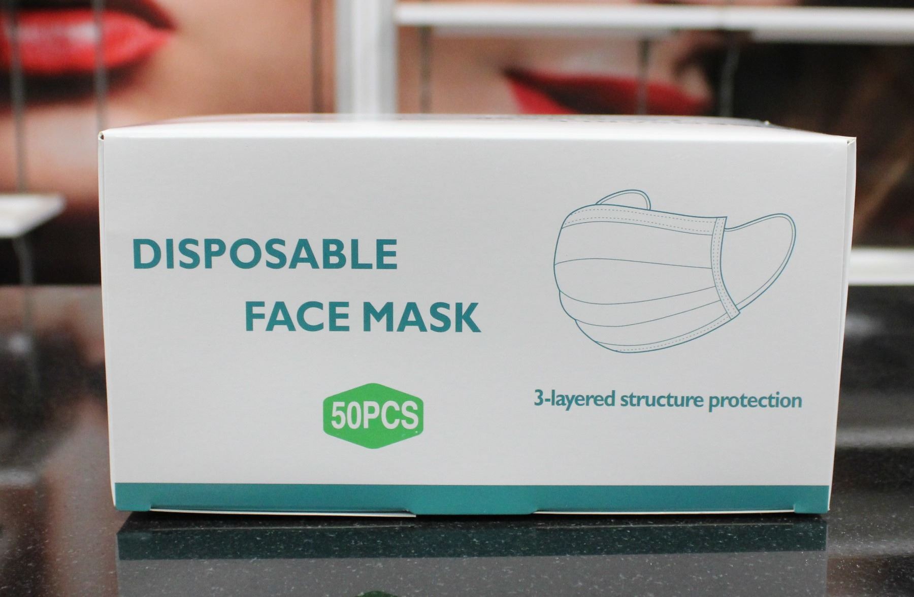 BOX OF 50 DISPOSIBLE FACE MASKS.