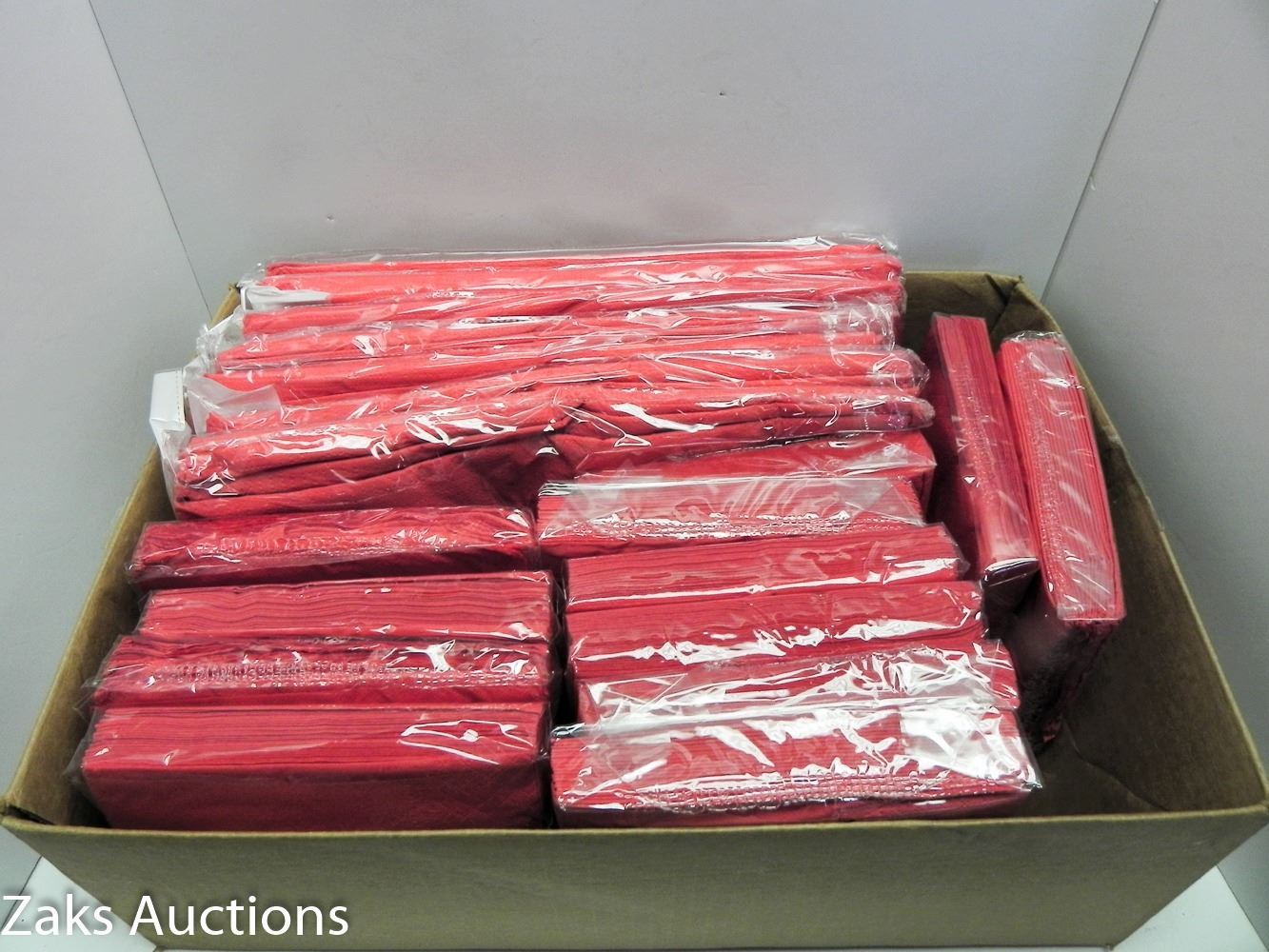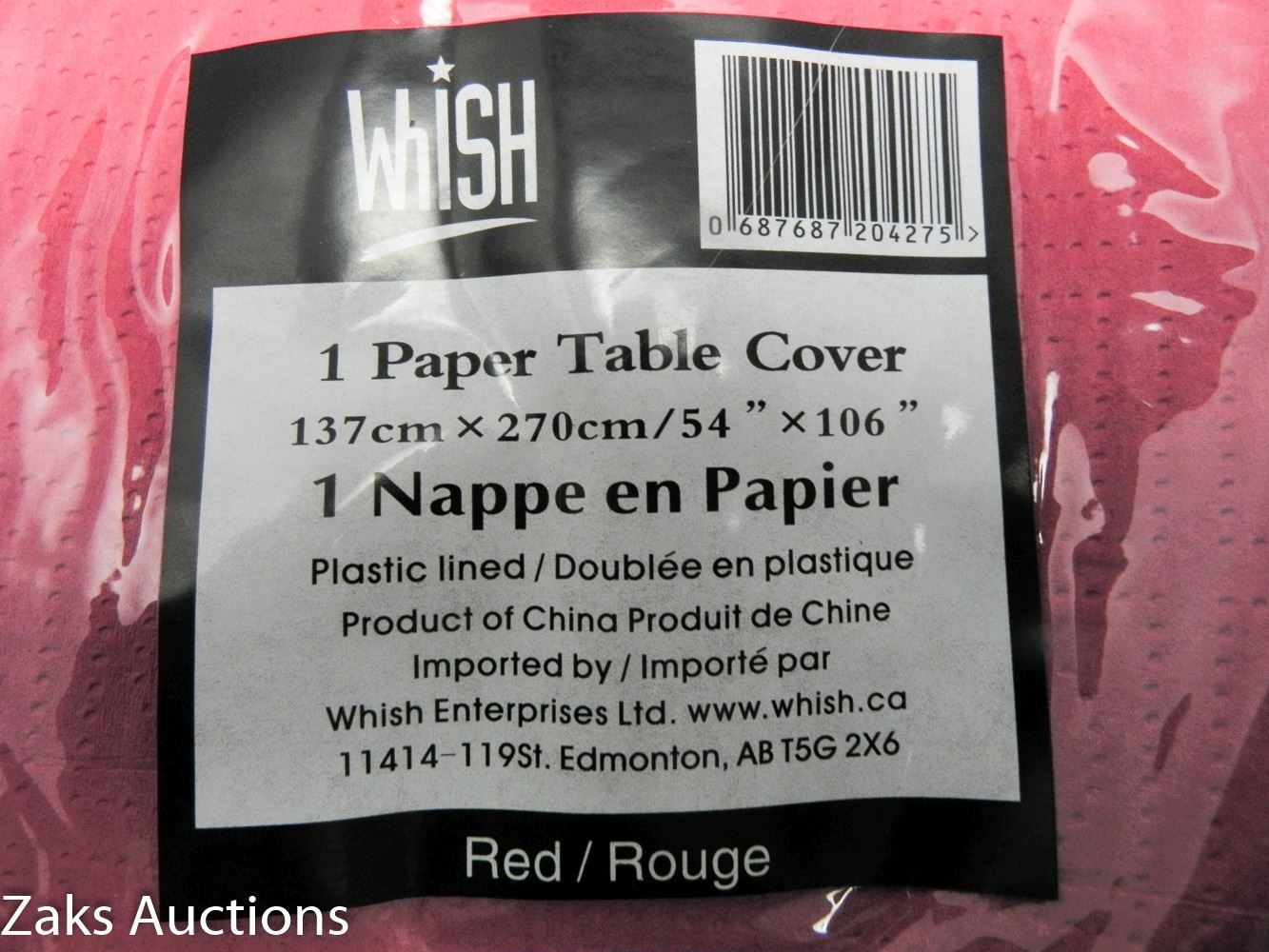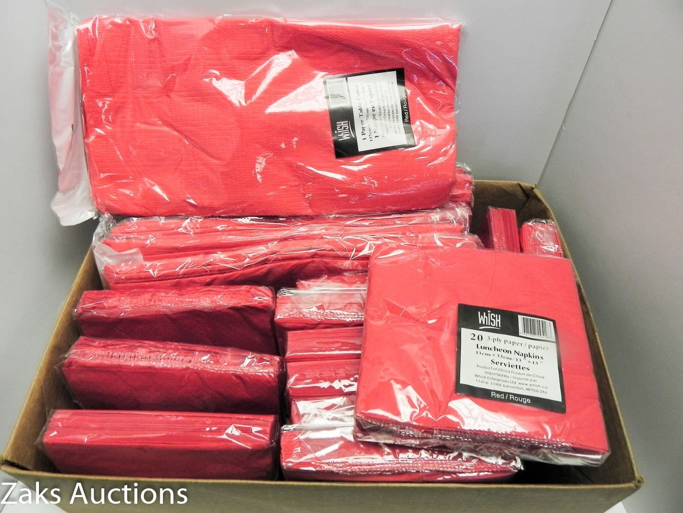 BOX OF 7 RED PAPER TABLE CLOTHS WITH 12 PKGS RED PAPER NAPKINS
