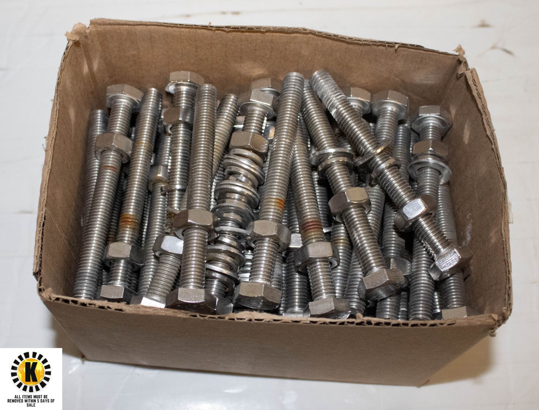 BOX OF 75 SS METRIC BOLTS W/NUTS, WASHERS 110MM
