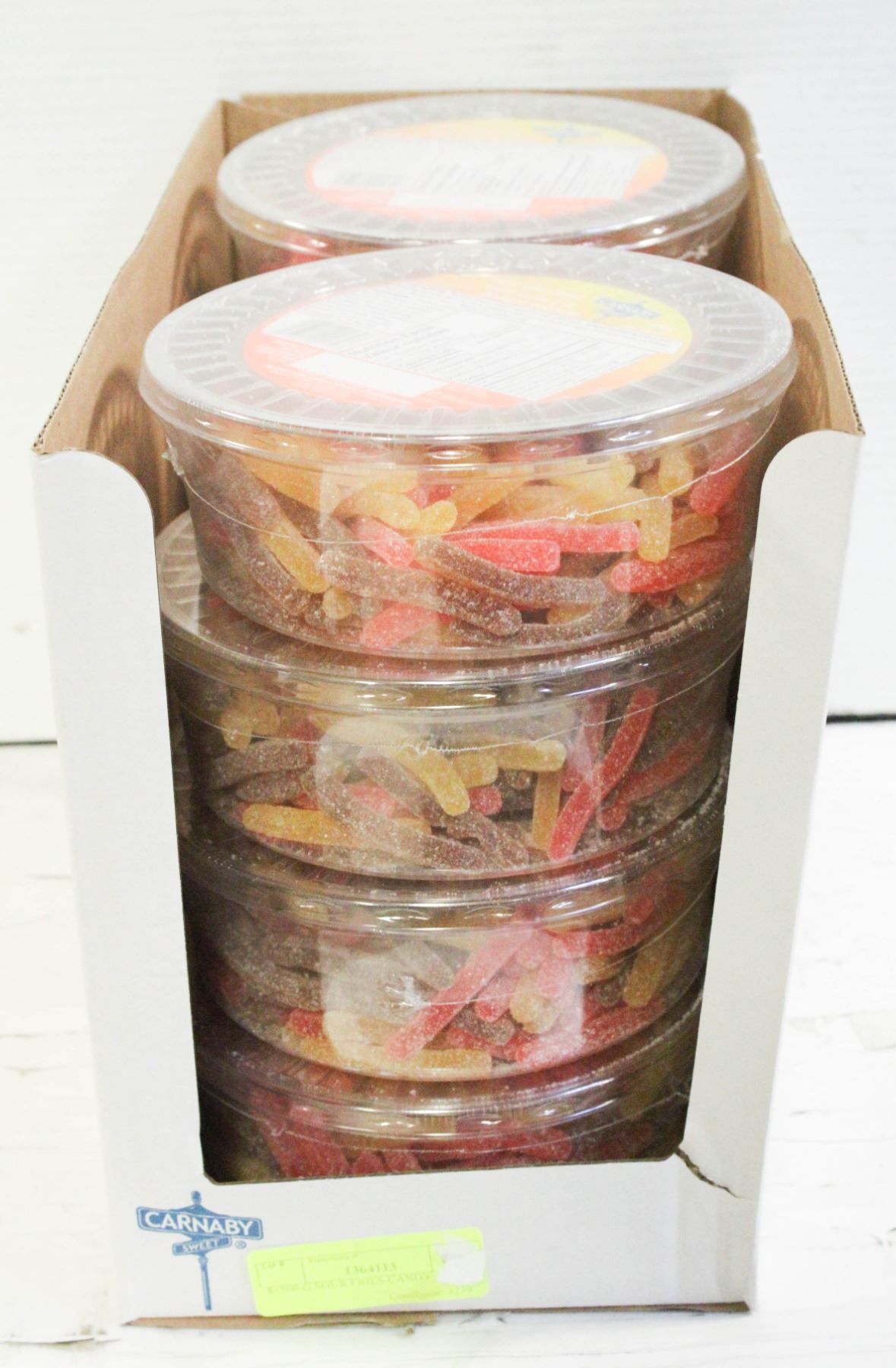 BOX OF 8 CONTAINERS OF CANDY SOUR SODA FRIES,