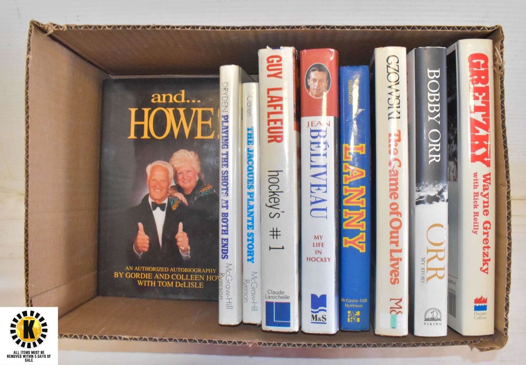 BOX OF 9 HARDCOVER HOCKEY BOOKS, HOWE
