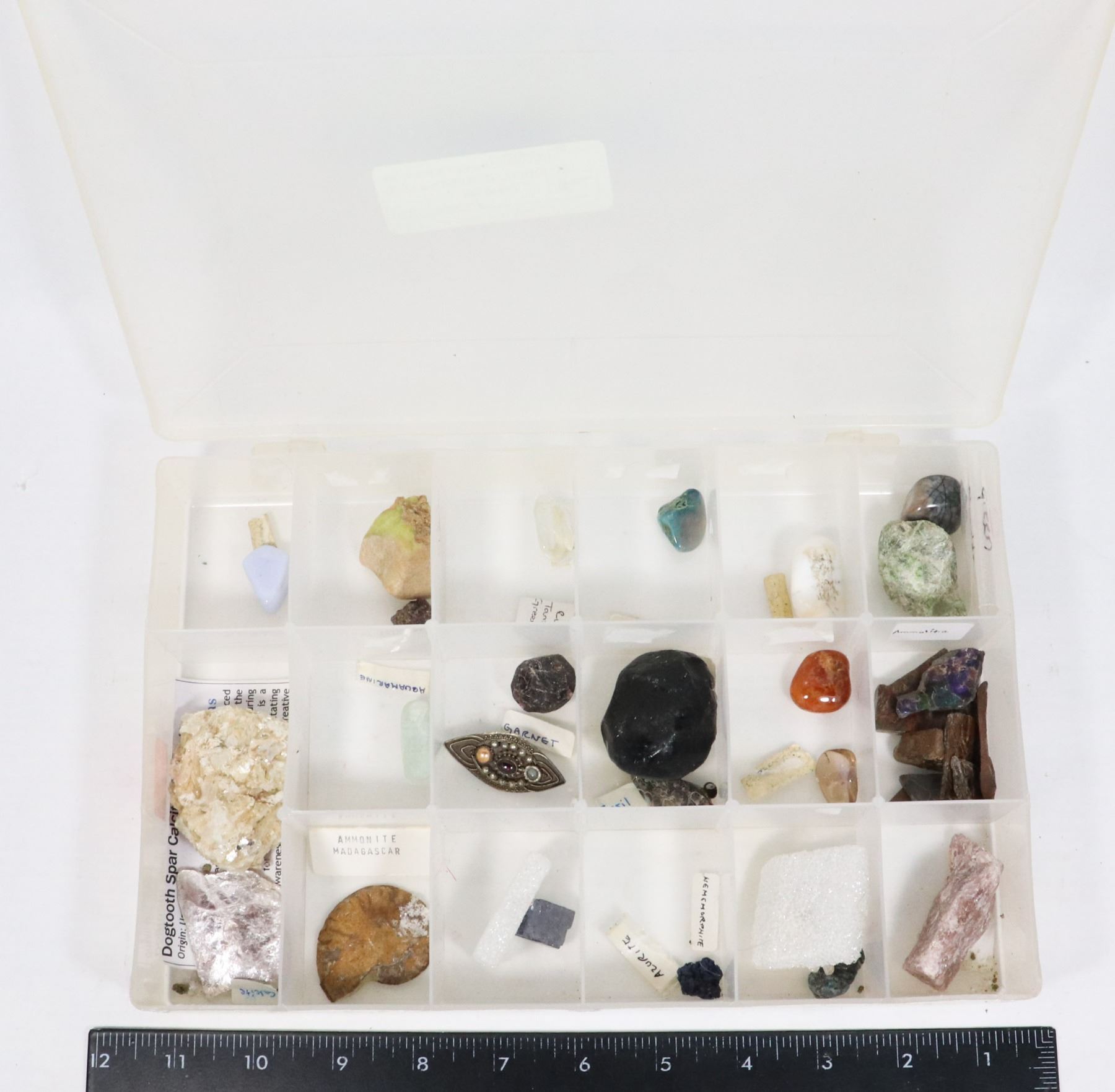BOX OF AMMONITE, AMMOLITE, MINERALS, GEMSTONES AND