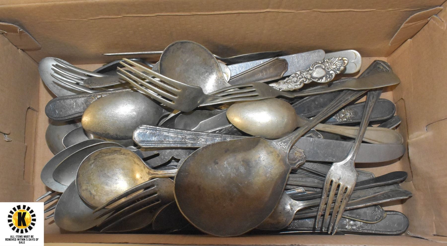 BOX OF ANTIQUE SILVER-PLATED CUTLERY