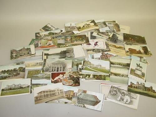 BOX OF APPROX. (725) MISC. POSTCARDS INCLUDING SMALL TOWN U.S.A., COMIC CARDS, HOLIDAYS, PHOTO CARDS, TEXAS, BRIDGES, TRAINS, ETC.