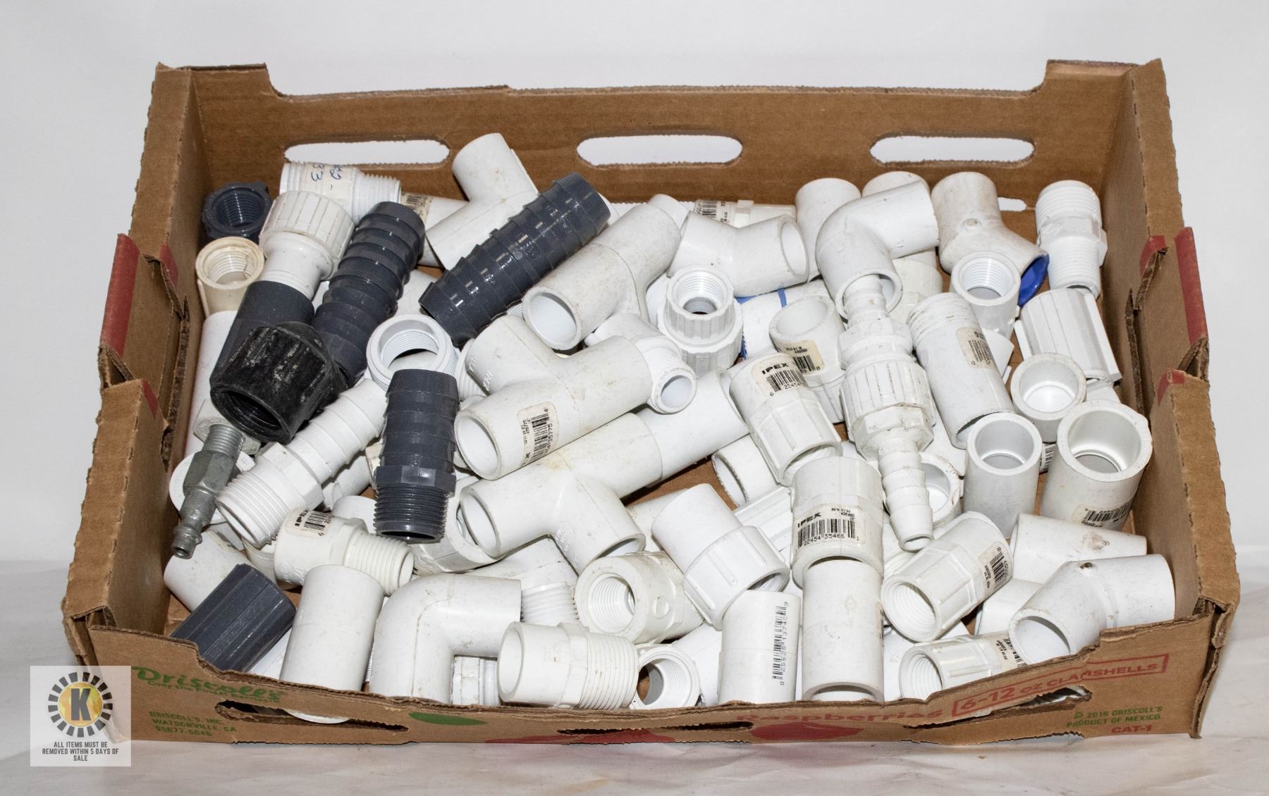 BOX OF APPROX 80 NEW 1/2  PVC IRRIGATION FITTINGS