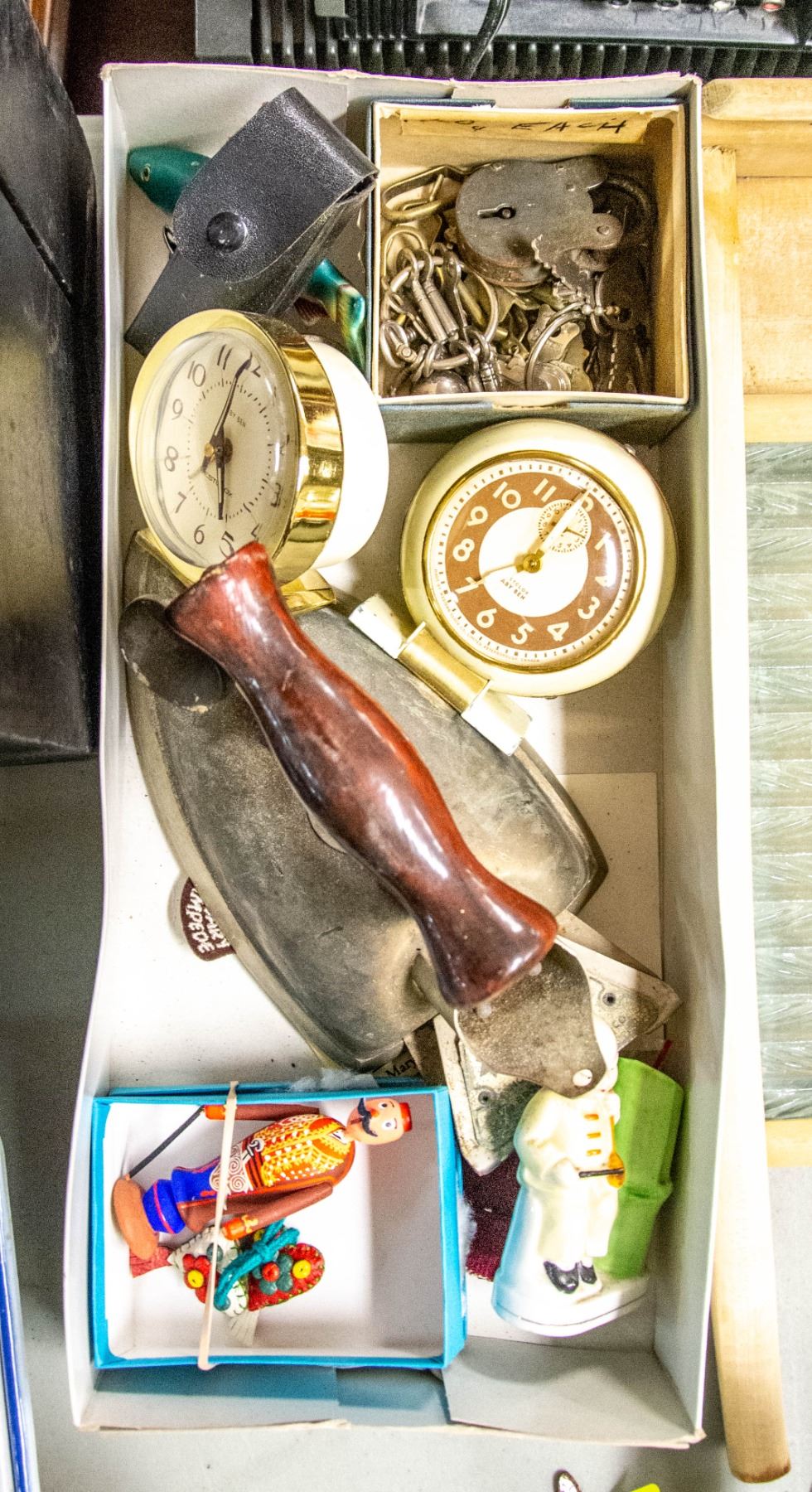 BOX OF ASSORTED ANTIQUES COLLECTIBLES