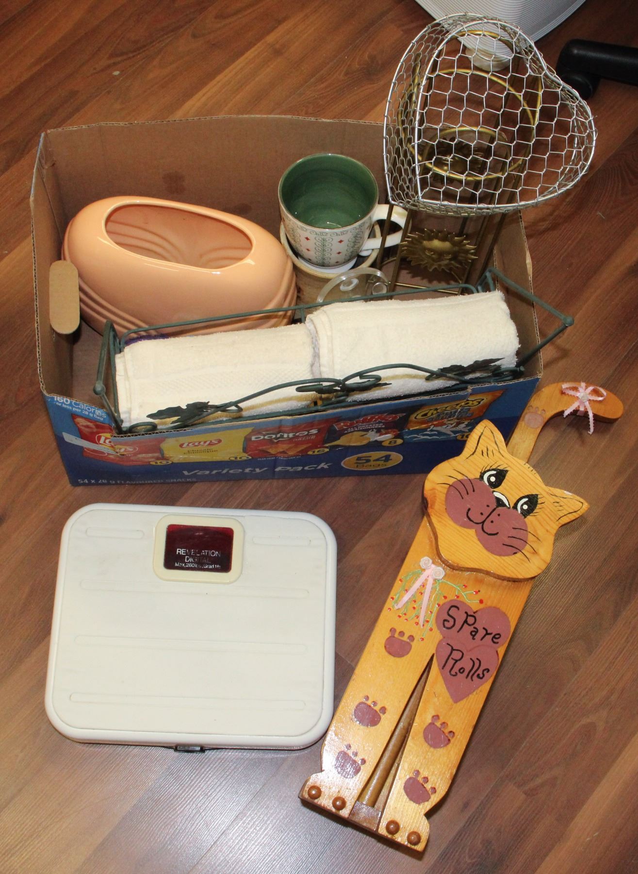 TOILET PAPER SPARE ROLL HOLDER IN THE SHAPE OF A CAT, VINTAGE DIGITAL SCALE, AND MORE