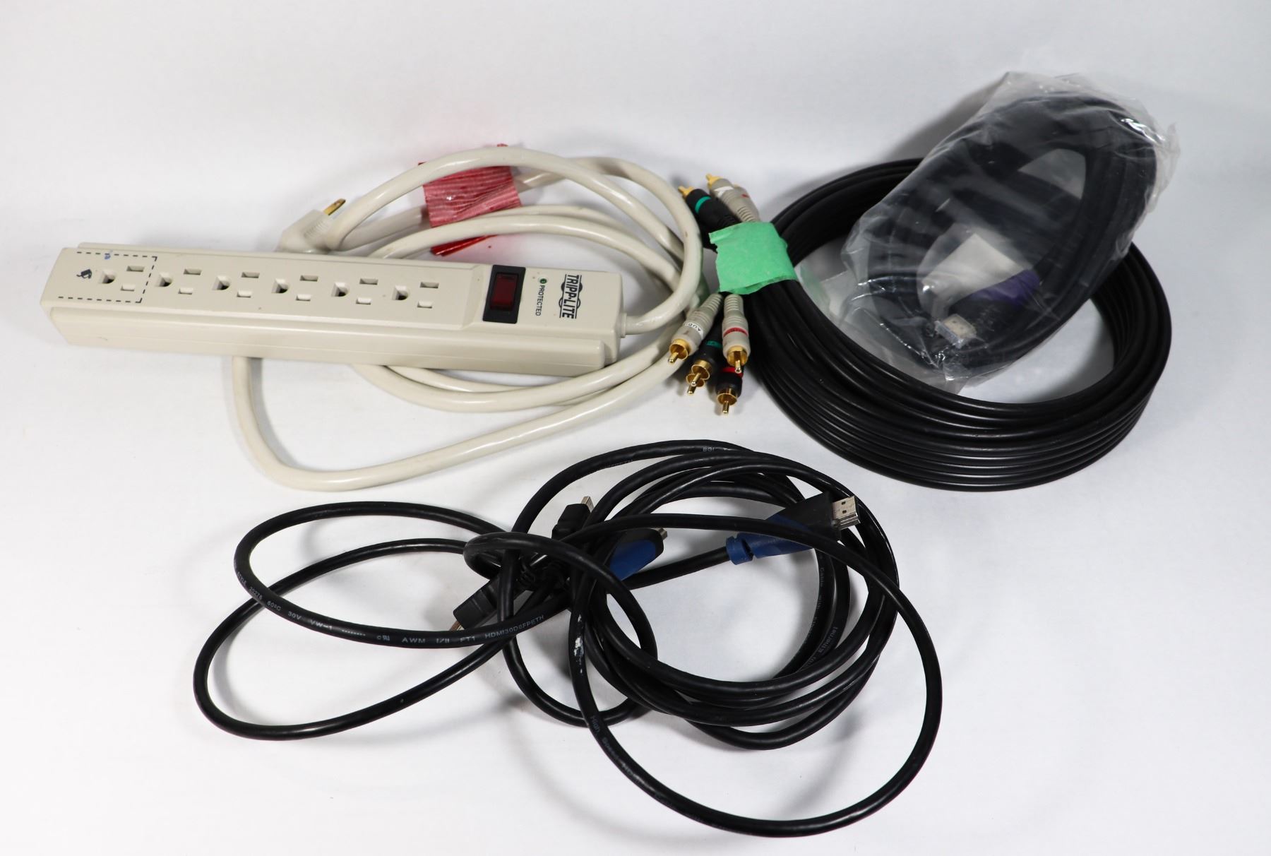 BOX OF ASSORTED CABLES AND EXTENSION CORD