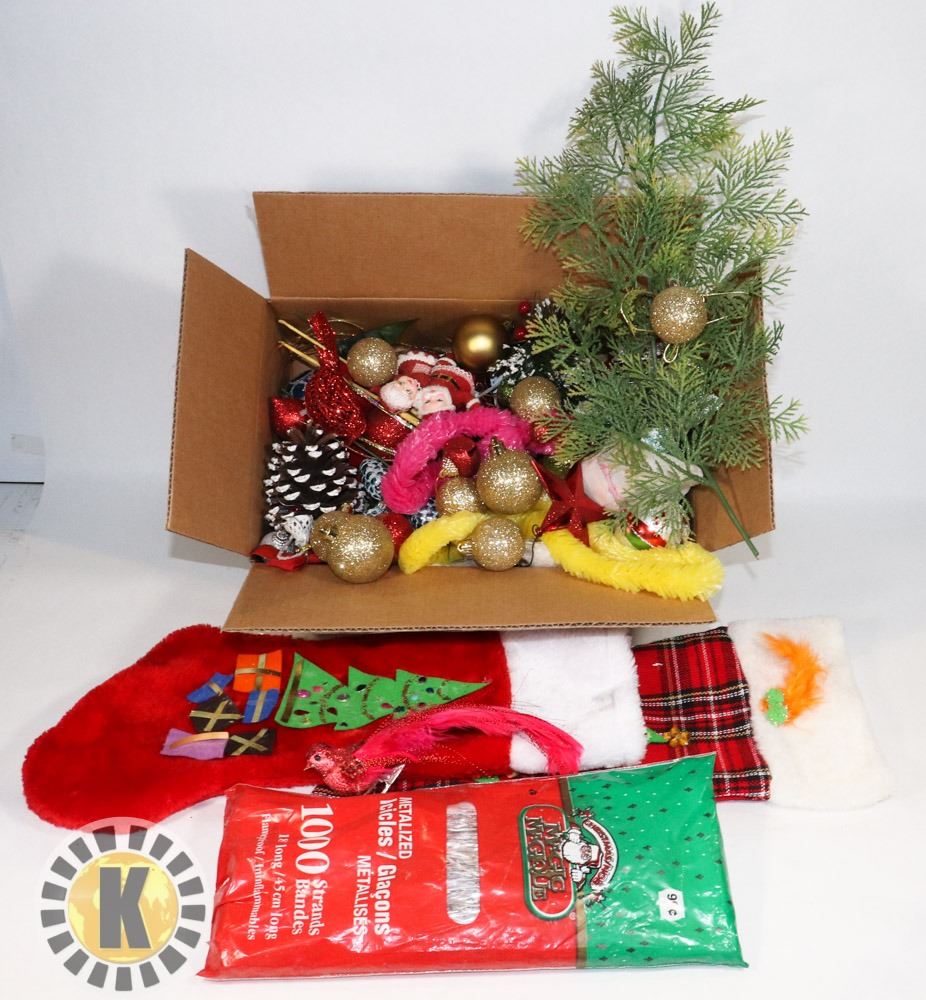 BOX OF ASSORTED CHRISTMAS DECORATIONS
