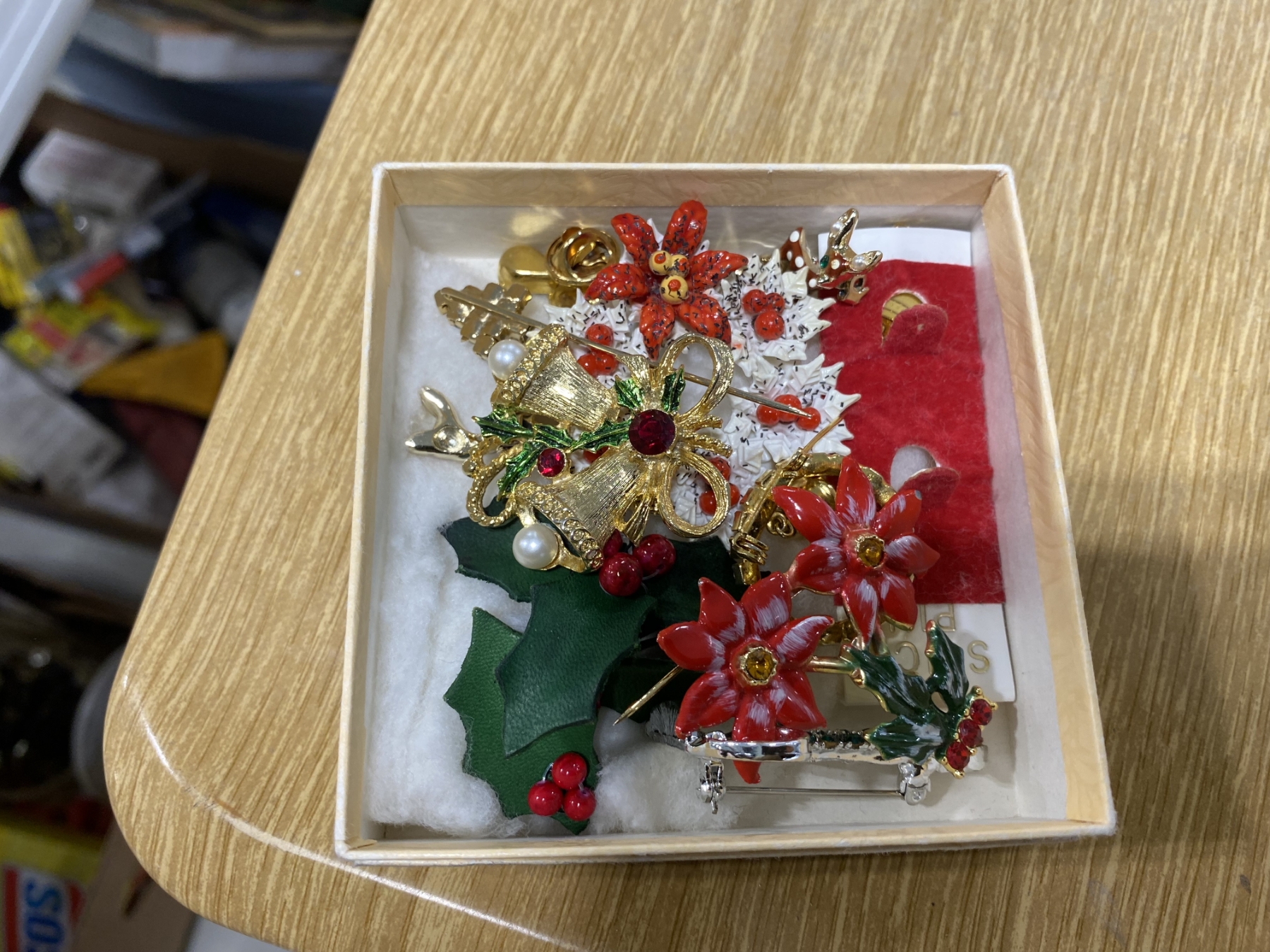 BOX OF ASSORTED CHRISTMAS PINS