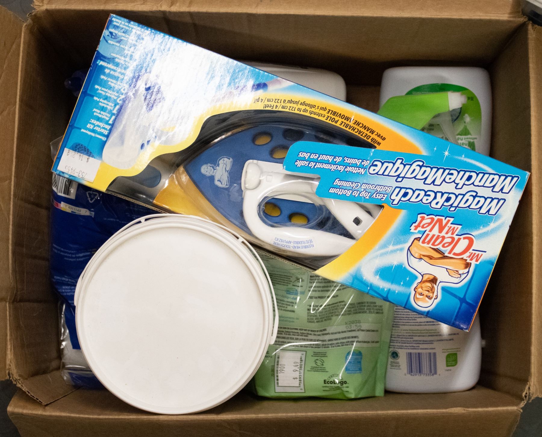 BOX OF ASSORTED CLEANING PRODUCTS