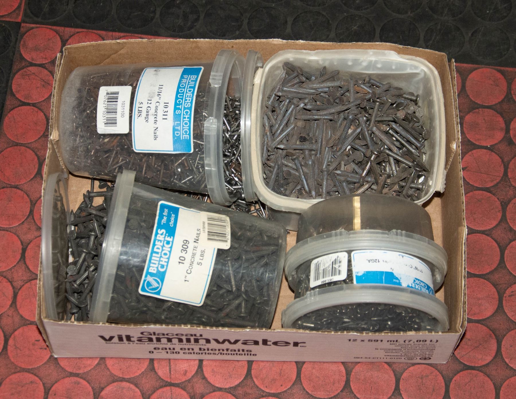 BOX OF ASSORTED CONCRETE NAILS-10 LBS APPROX