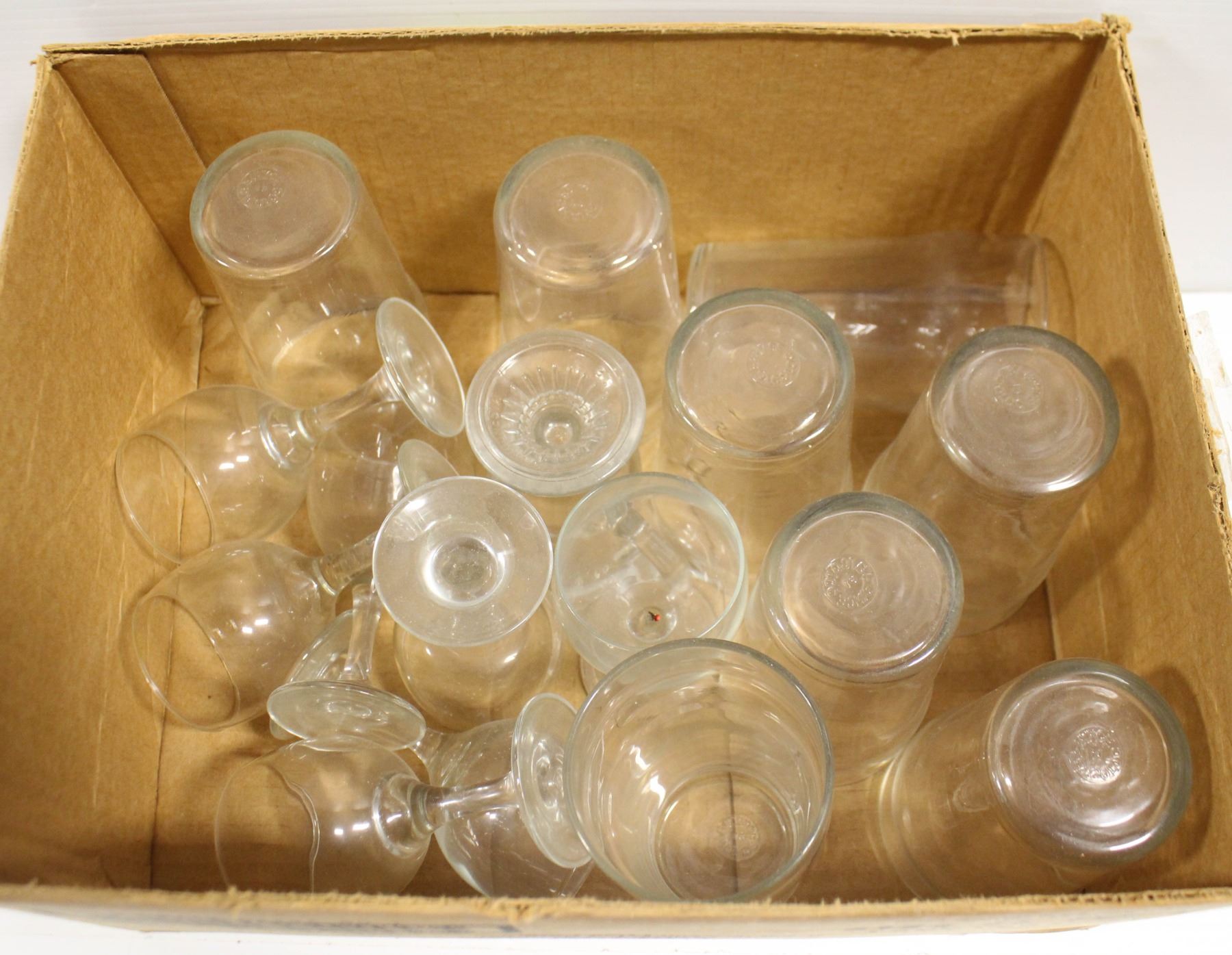BOX OF ASSORTED DRINKING GLASSES