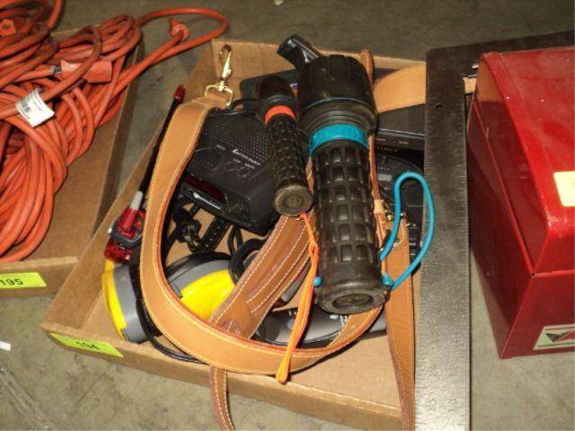 BOX OF ASSORTED ELECTRONICS, TAPE RECORDERS, HEADPHONES, BOOK LIGHTS, ETC...