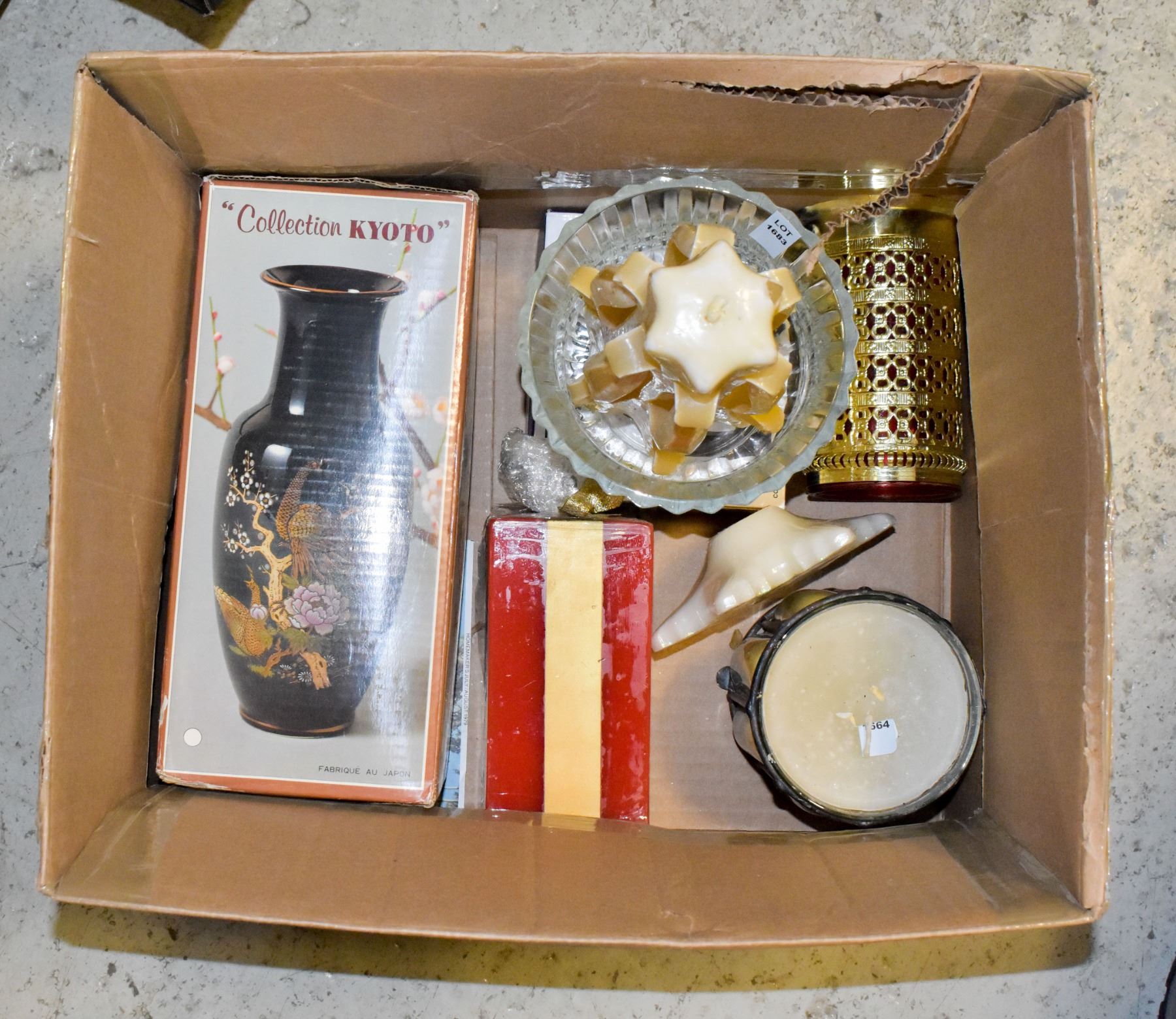 BOX OF ASSORTED ESTATE CANDLES & MISC