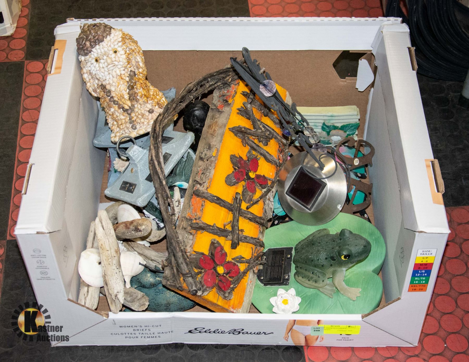 BOX OF ASSORTED GARDEN ORNAMENTS