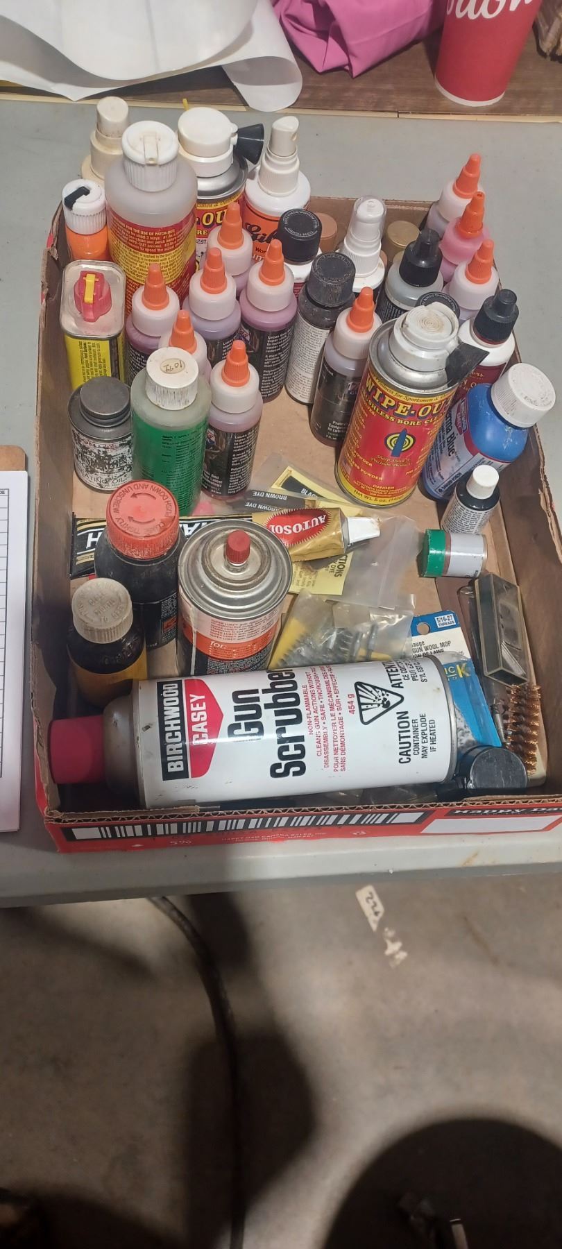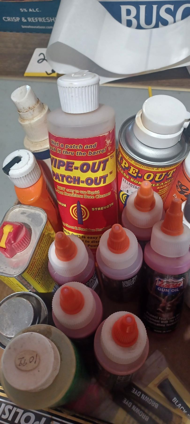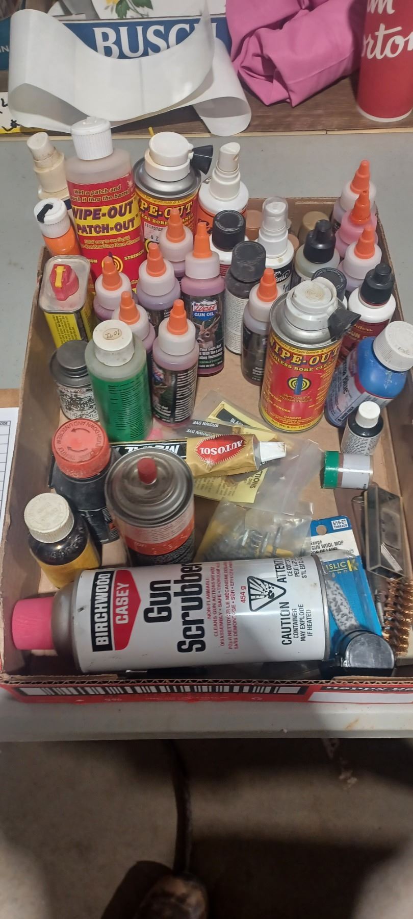BOX OF ASSORTED GUN CLEANING SUPPLIES
