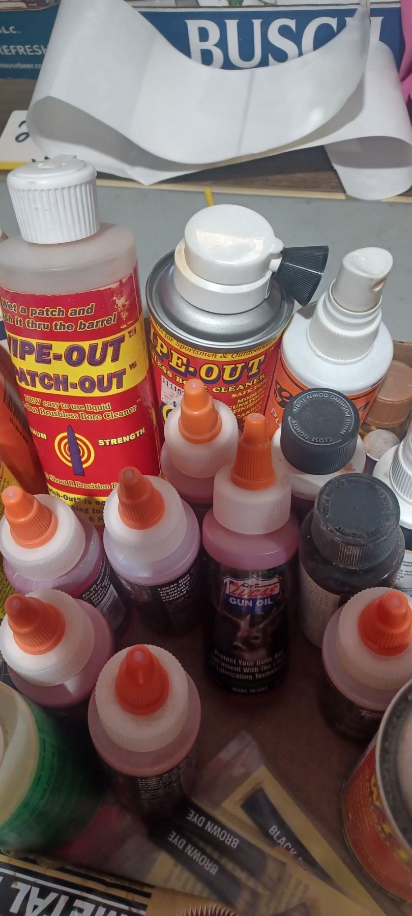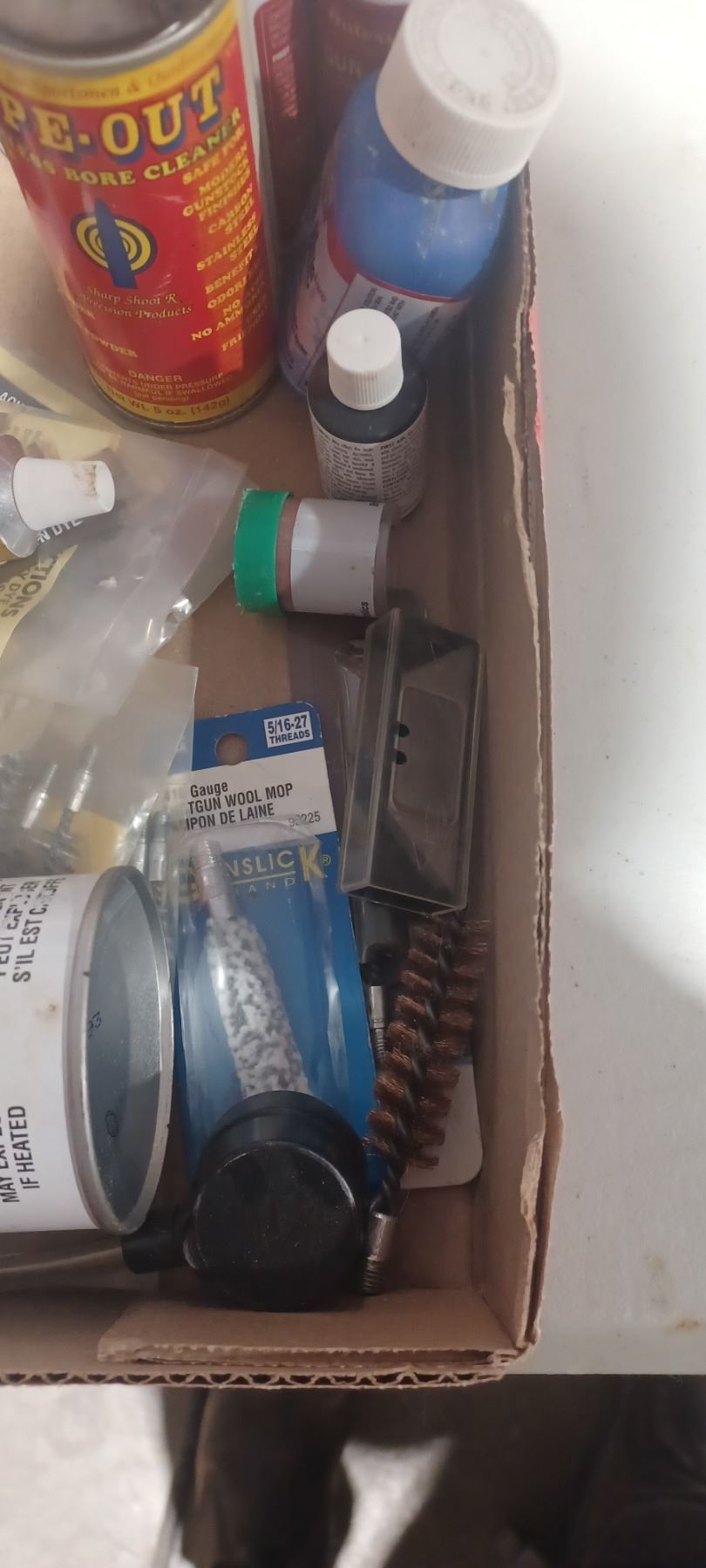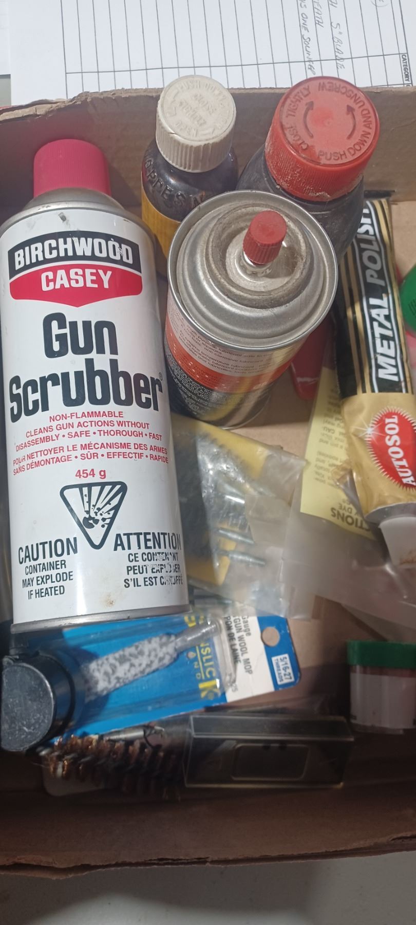 BOX OF ASSORTED GUN CLEANING SUPPLIES