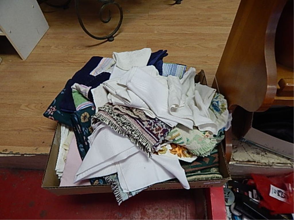 BOX OF ASSORTED LINEN - NAPKINS, TABLE CLOTHES,ETC