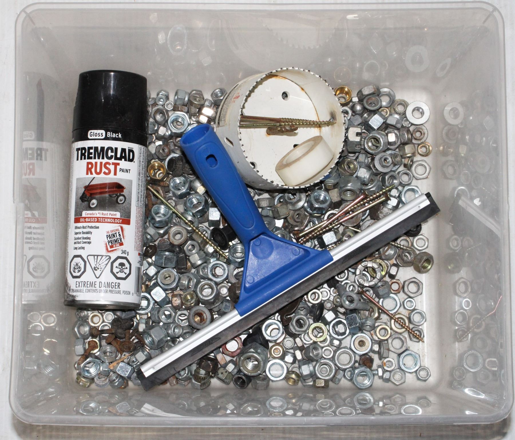 BOX OF ASSORTED NUTS, HANDHELD SQUEEGEE