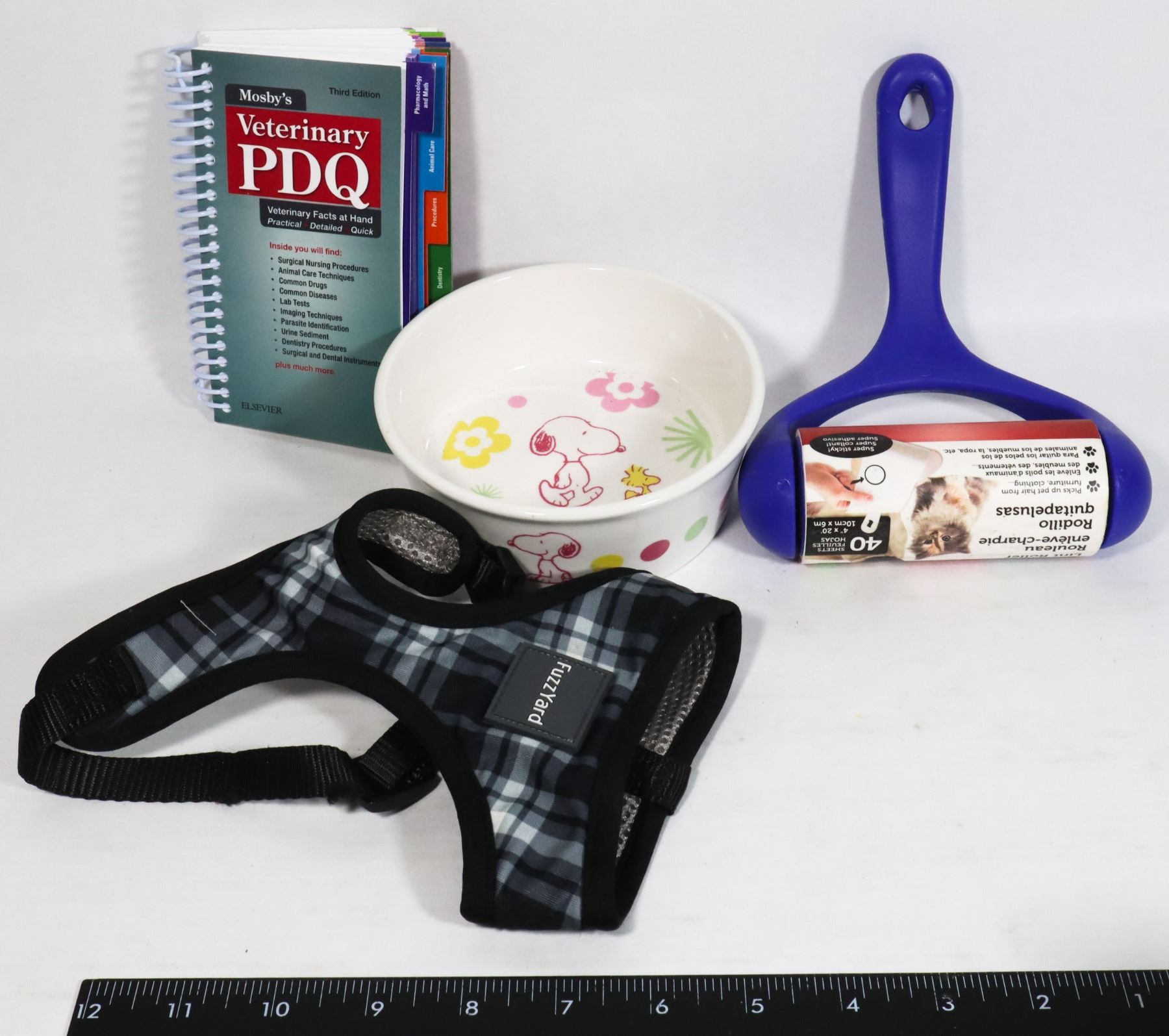 BOX OF ASSORTED PET ITEMS INCLUDING LINT ROLLER,