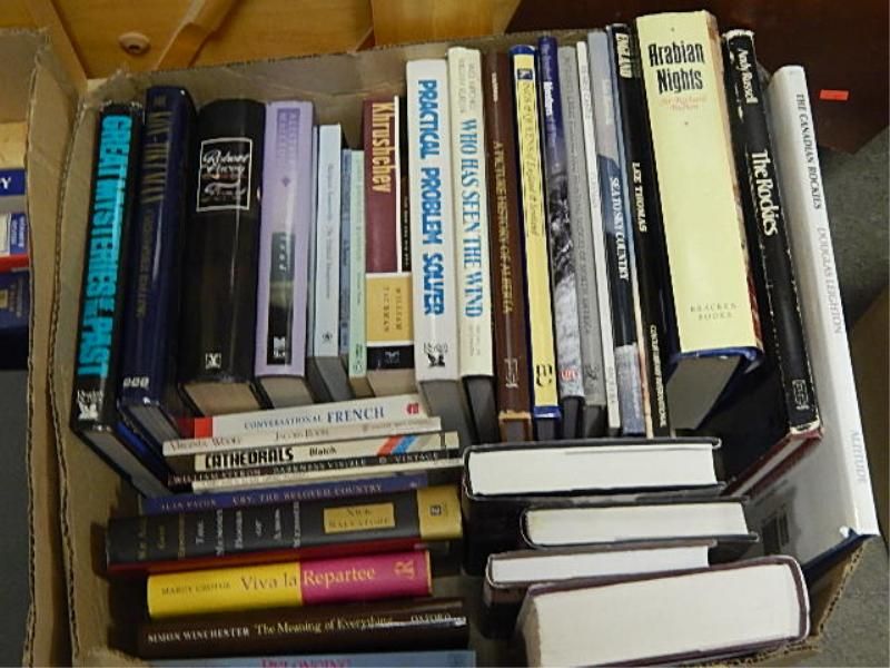 BOX OF ASSORTED QUALITY HARD COVER BOOKS & OTHERS
