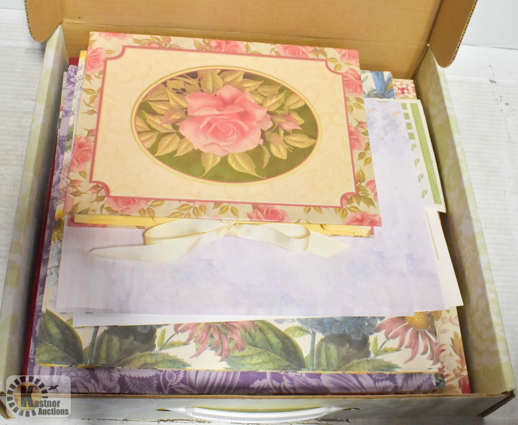BOX OF ASSORTED SCRAPBOOKING PAPER