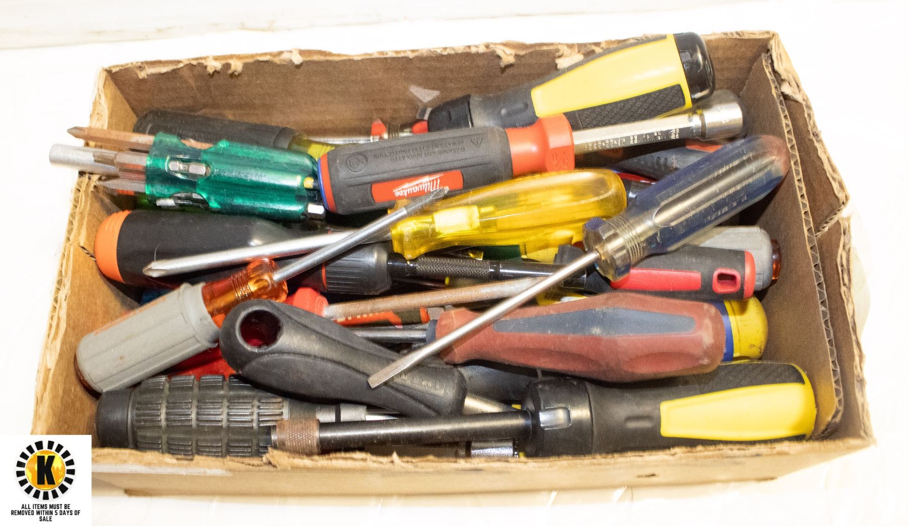 BOX OF ASSORTED SCREW DRIVERS