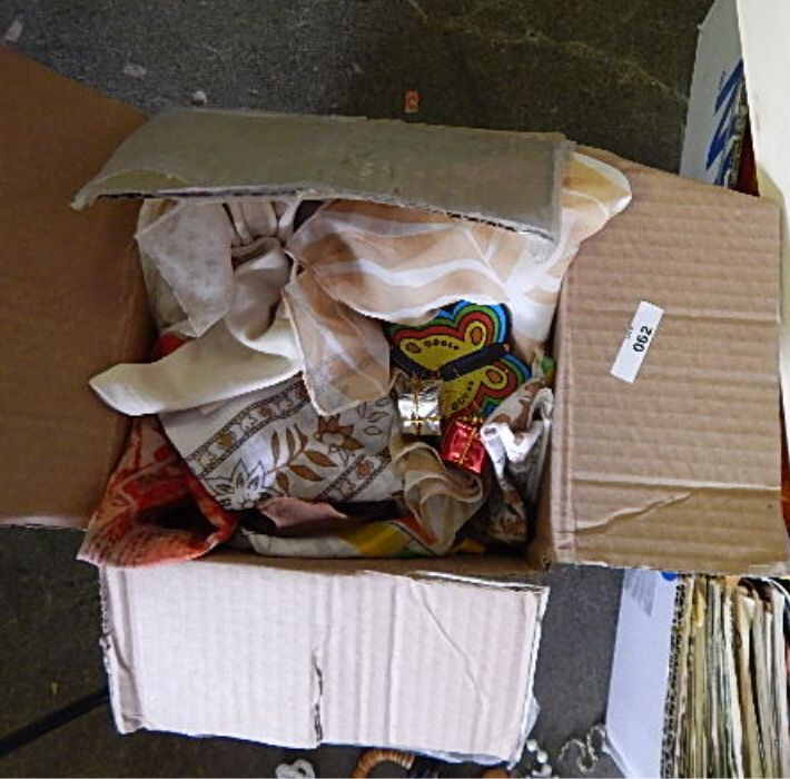 BOX OF ASSORTED SILK AND OTHER SCARVES AND LADIES LONG DRESS GLOVES