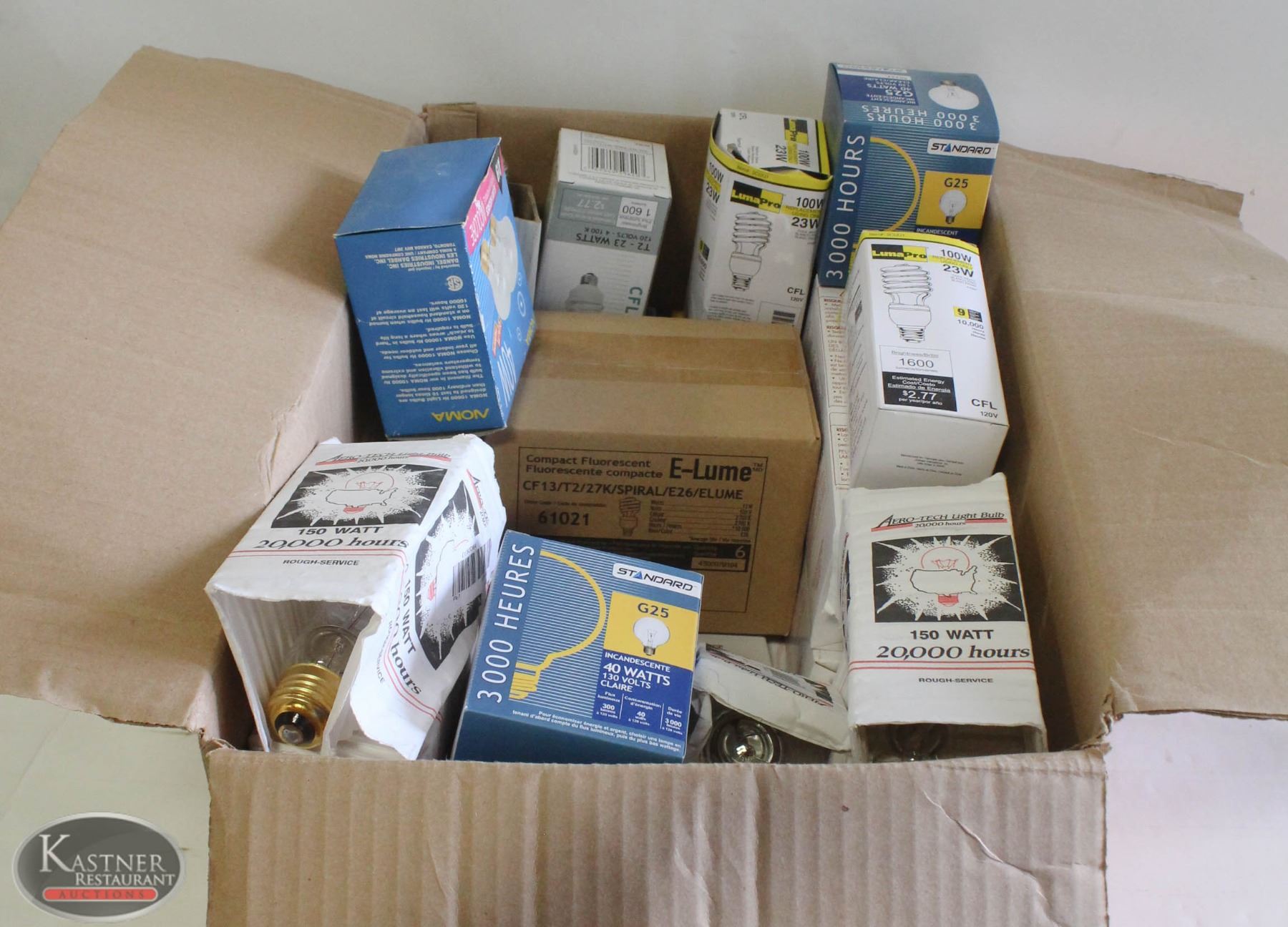 BOX OF ASSORTED SIZE LIGHT BULBS