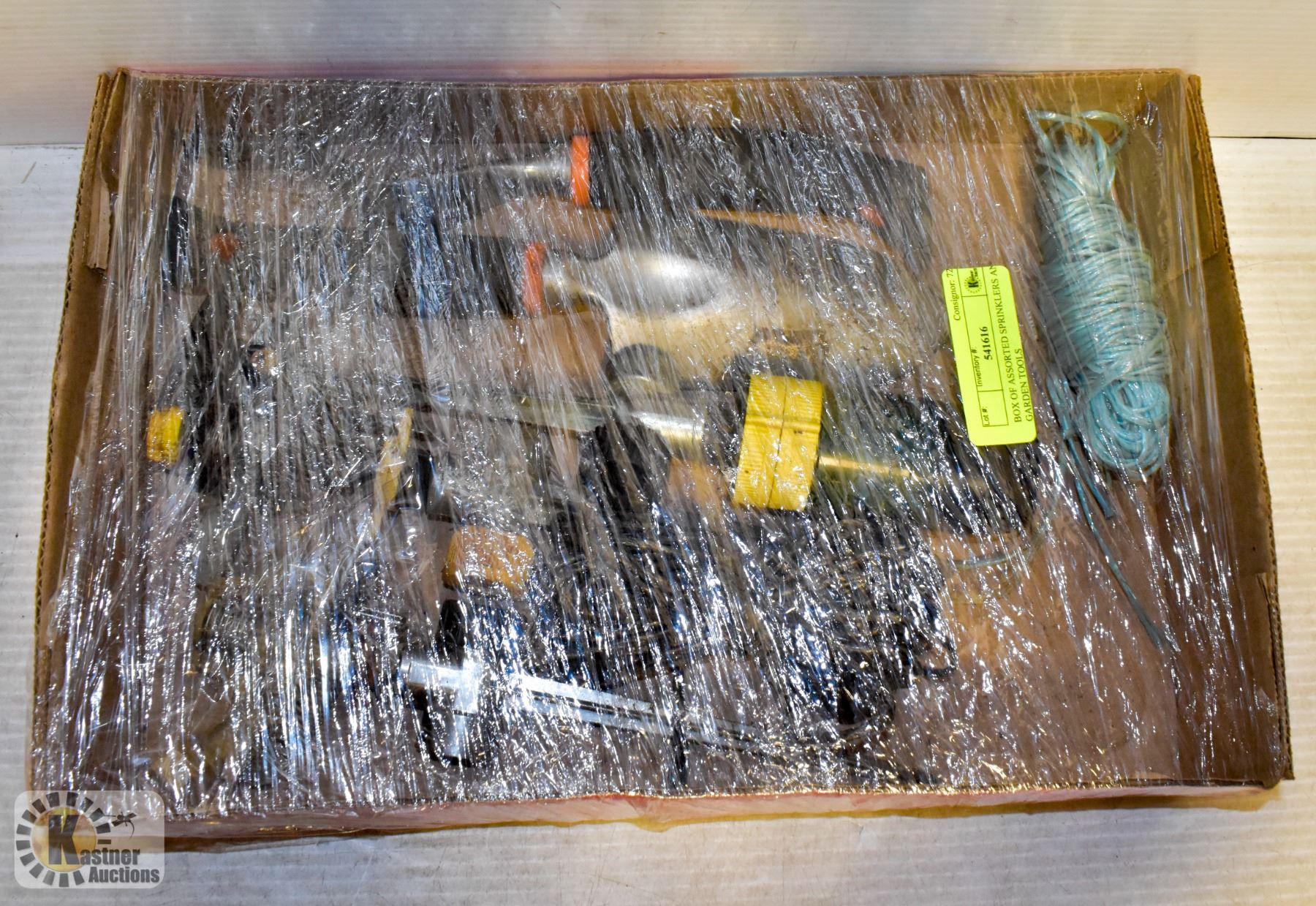 BOX OF ASSORTED SPRINKLERS AND GARDEN TOOLS