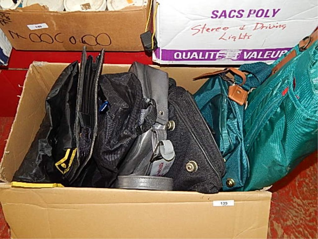 BOX OF ASSORTED TRAVEL BAGS ETC