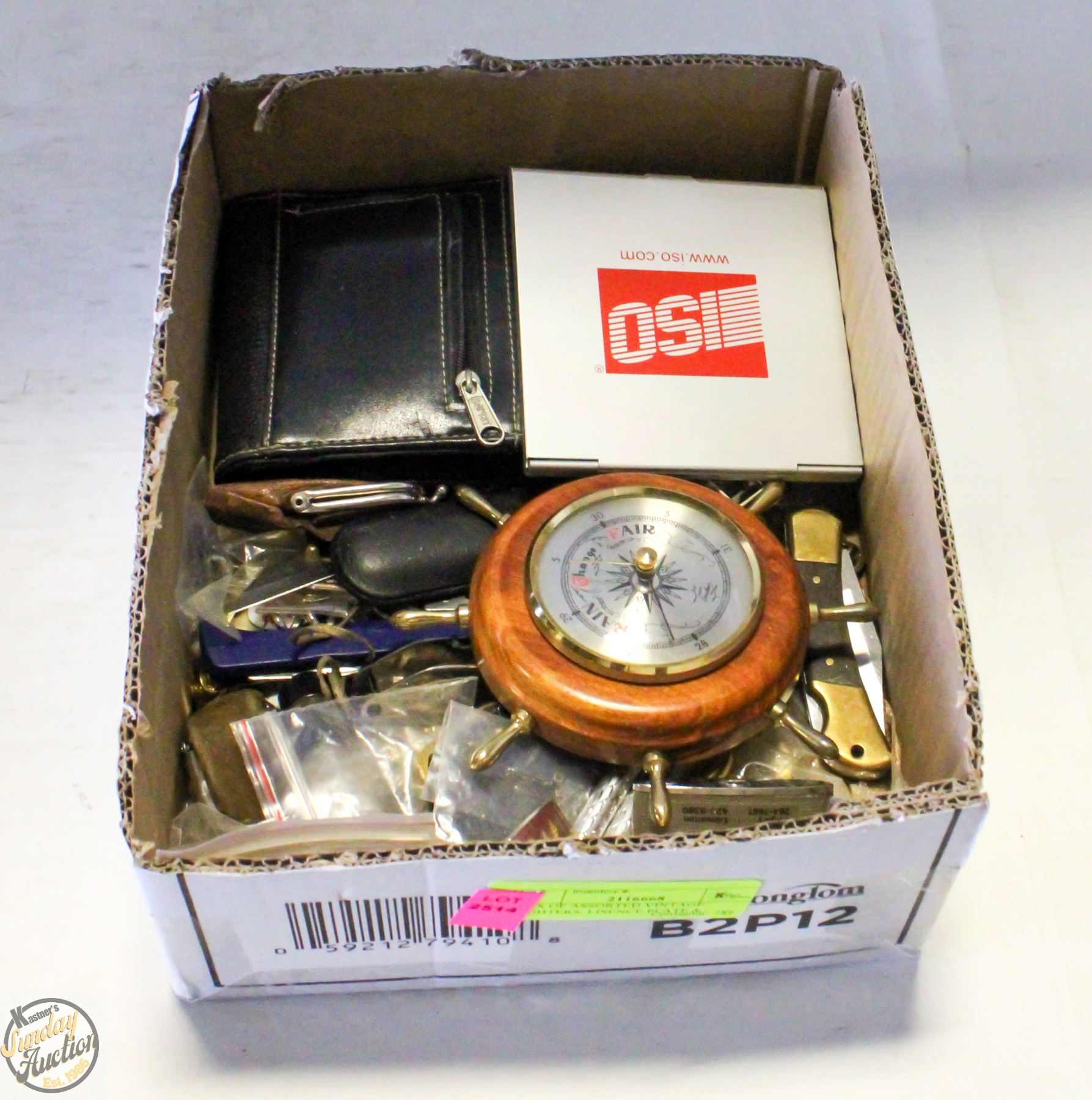 BOX OF ASSORTED VINTAGE LIGHTERS, LISENCE PLATE &