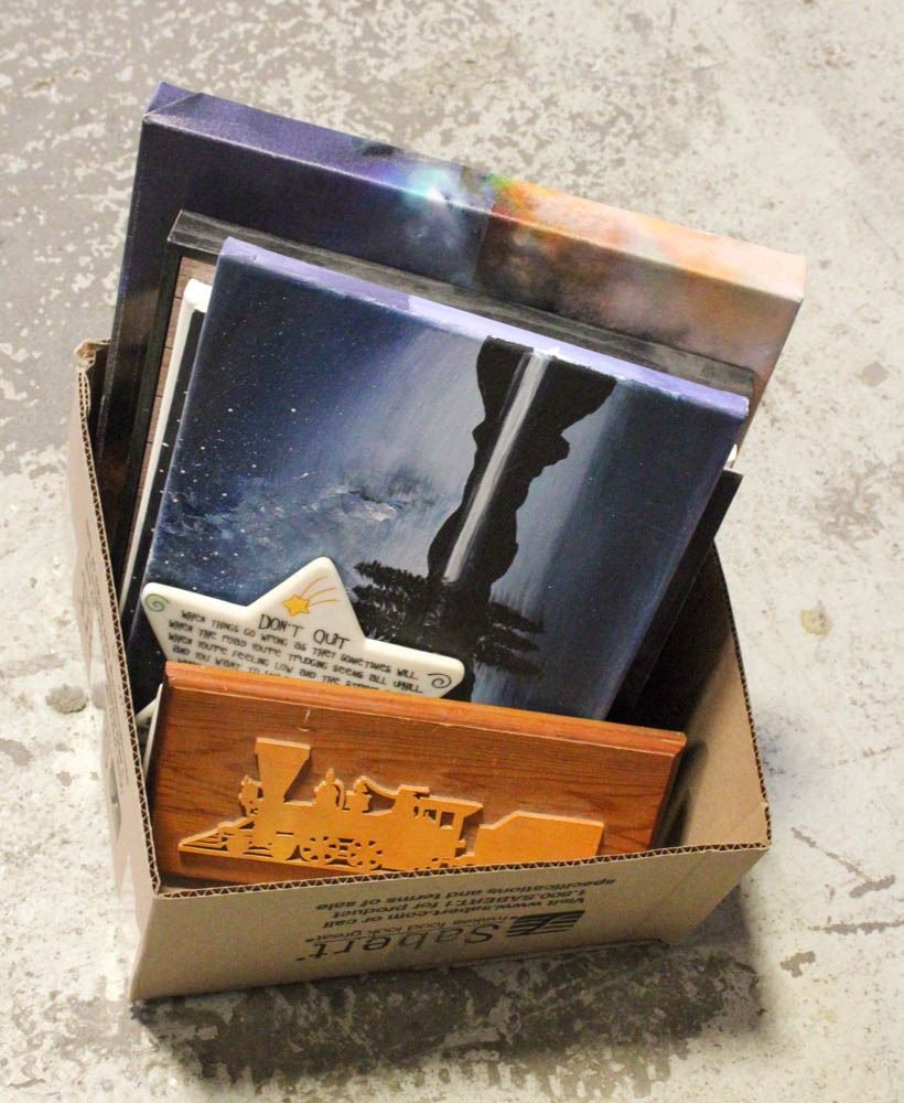 BOX OF ASSORTED WALL HANGINGS * ESTATE*
