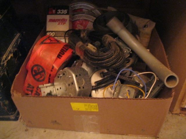 BOX OF ASST. ELECTRICAL BOXES, ETC.
