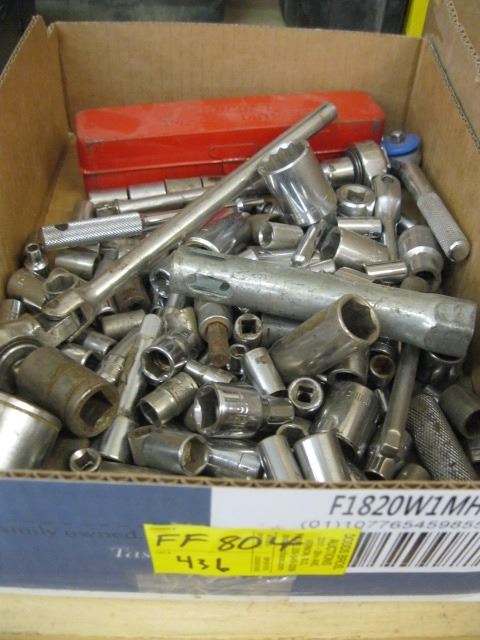BOX OF ASST. SOCKETS & RATCHETS, IMPACT DRIVER, ETC.